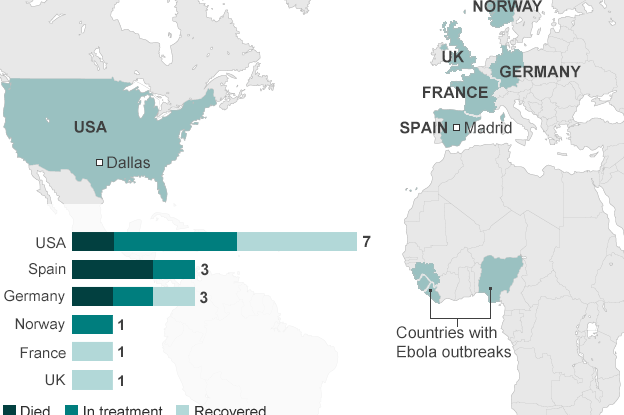 Tutti ci dicono di stare tranquilli, la situazione può essere controllata, ma nel frattempo stati sovrani, che reputo seri e moderni, prendono delle misure di prevenzione restrittive e che possono sembrare quasi razziste. Gli Stati Uniti varano un sistema di sicurezza e di controllo dello stato di salute delle persone che arrivano da da alcune parti dell’Africa; mentre l’Australia chiude, completamente, alla migrazione dagli stati Africani. Nel frattempo, sulle nostre coste sbarcano migliaia di migranti ogni giorno, e dal colore della pelle non mi sembrano Siriani. Nei nostri aeroporti arrivano persone da ogni stato, anche Africano, senza il minimo controllo sanitario. Il nostro ministero della Sanità indica nella mancanza di fondi, l’impossibiltà di strutturare una difesa sanitaria degna. E’ notizia di oggi che un generale, e dieci militari americani sono transitati nell’aeroporto militare di Pratica di Mare, direzione base Nato di Vicenza, di ritorno dalla Liberia, senza che nessuno li controllasse o li mettesse in quarantena. Quarantena che è poi scattata all’arrivo a destinazione. Se fossero atterrati in qualsiasi aeroporto americano, avrebbero avuto tutt’altro trattamento sanitario. Nel messaggio alla nazione, Obama ha dichiarato che: per evitare qualsiasi possibilità di contagio, o di pandemia, le uniche armi in mano alla scienza sono: la prevenzione, e l’attenzione massima verso quelle popolazioni o quei viaggiatori di ritorno da alcune zone a rischio. Ad oggi, più di 10.000 casi sono stati riscontrati in Africa, di cui oltre 5.000 sono culminati con decessi, mentre la mappa del contagio nel mondo è la seguente (dato al 15 ottobre fonte: Europa):