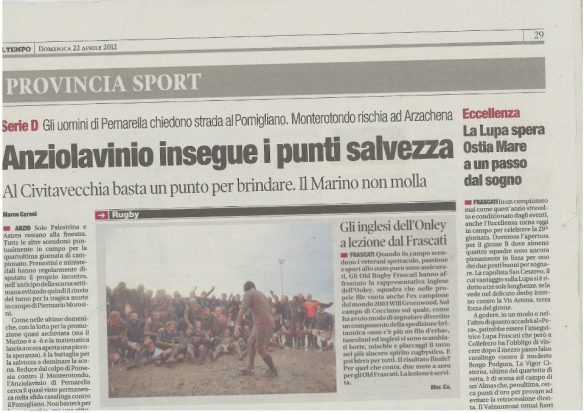 A seguire è uscito un articolo su “Il Tempo”, il titolo la dice lunga sia sulla qualità dei nostri avversari, sia sull’importanza del risultato: