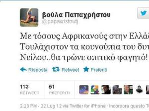Twitter fa la sua prima (giusta) vittima. L’atleta greca Voula Papachristou, specialista nel salto triplo è stata cacciata dalle prossime olimpiadi, dal comitato olimpico, per un tweet razzista, che recitava: “Con tanti africani in Grecia, le zanzare che arrivano dal Nilo occidentale, almeno riceveranno il cibo da casa”. Il riferimento, incomprensibile fuori dai confini greci, è relativo a un’epidemia, denominata “virus del Nilo”, dovuta agli insetti, che, in Grecia, hanno già provocato un morto e almeno altri 5 casi sospetti nella popolazione. Immediate le scuse dell’atleta greca, campionessa europea U23, sul suo profilo facebook che però non hanno intenerito il comitato organizzatore, che ha confermato la condanna, e ribadito, se mai ce ne fosse stato bisogno, che ogni forma di razzismo è fuori dai valori Olimpici, e non solo. I valori che una manifestazione come l’Olimpiade deve portare avanti, non possono essere inquinati da tale stupidità. I social network, che il CIO sta spingendo a far utilizzare agli atleti, per una diretta ed immediata divulgazione dell’emozioni di questi ragazzi che